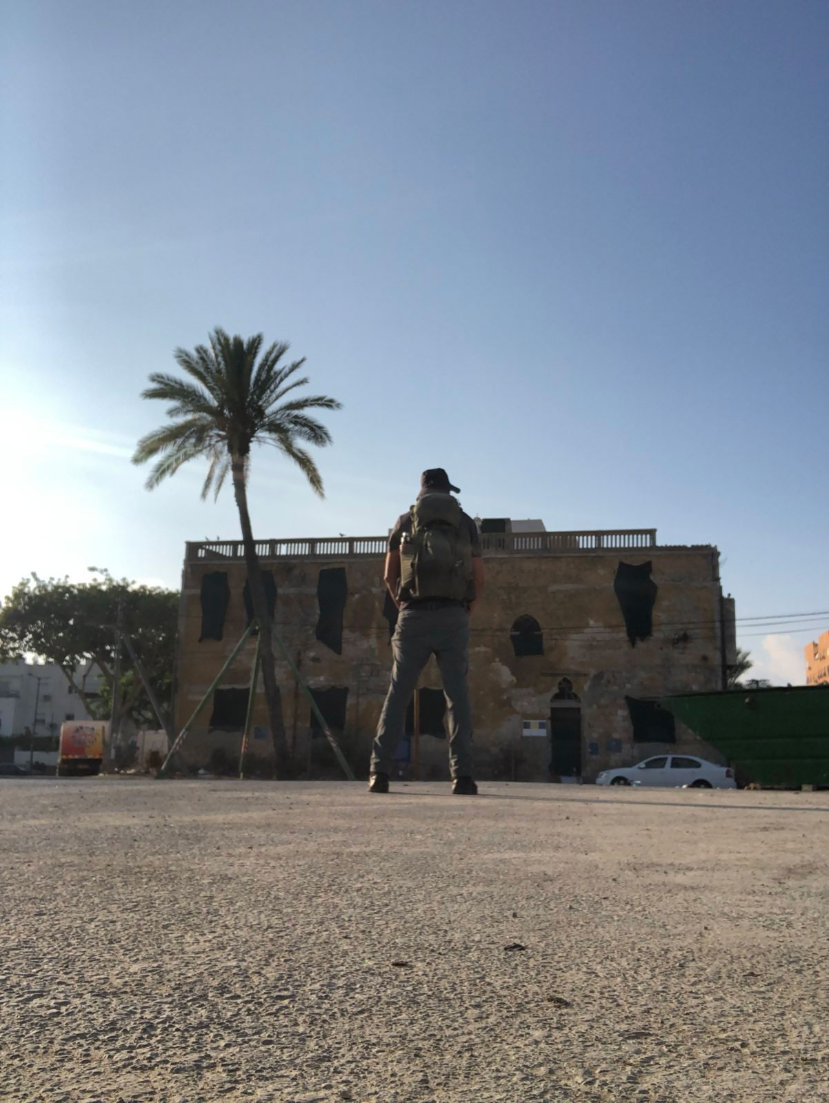 ألتقطُ صوراً للعمارة التي كانت في يوم من الأيام مقهى وعيادات على ما يقول المستعمِر. ولكني لست متأكداً… ربما كانت منزل رئيس البلدية السيّد أبو شرخ.