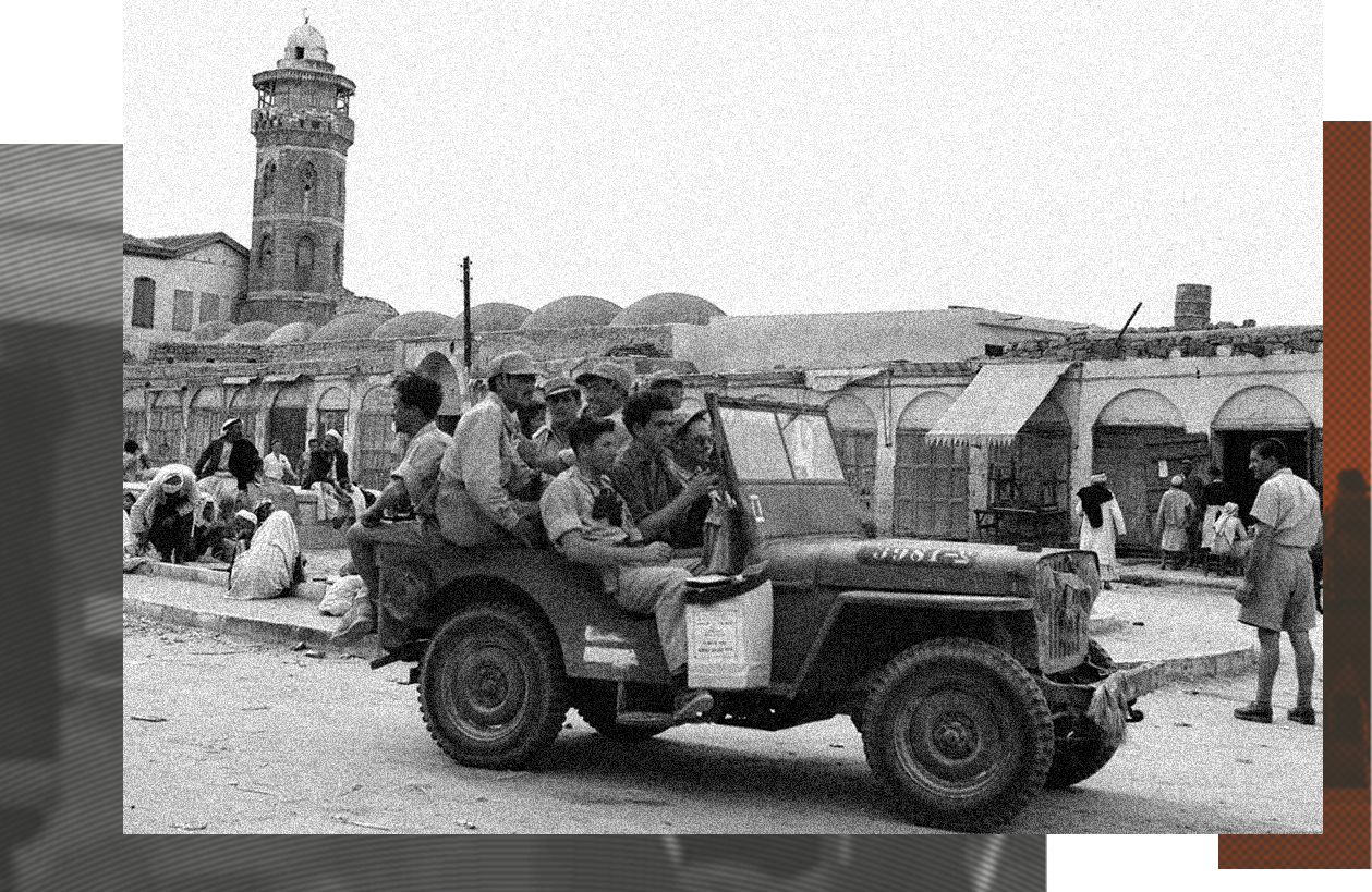 5 تشرين الثاني 1948. المصدر صهيوني. يظهر في خلفية الصورة أهل المدينة يمارسون إعمالهم بصورة طبيعية. على الرغم من اعتمادنا على صورة لاحتلال الصهاينة لمجدل غزه كصورة أولى في هذا النص، قررنا التحفّظ عليها من خلال هذه الملاحظة.